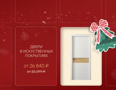 С 5 по 25 декабря при покупке дверей коллекций Centro, Galant, Neo, Planum, Planum Pro, Freedom дарим скидку 20% на дверной комплект (только распашные решения) в искусственных отделках: