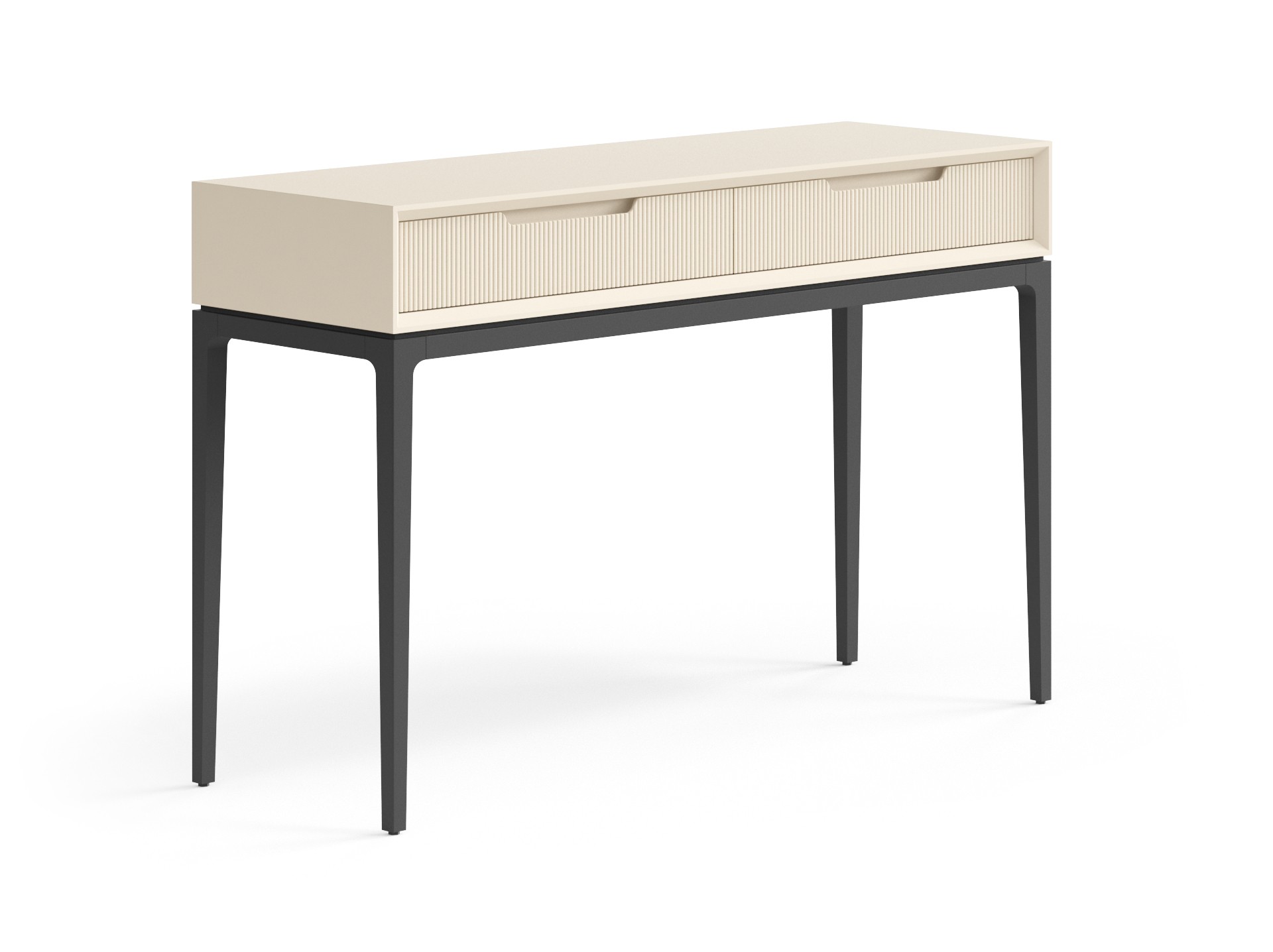 Консоль с двумя выдвижными ящиками идеально впишется в любое помещение вашего дома и сделает его особенным. Рифлёная поверхность фасада подчёркивает изысканный вид изделия и приятна на ощупь. А скрытые направляющие ящиков с доводчиками и фрезерованные ручки делают пользование консолью мягким, уверенным и максимально комфортным. Ваза с букетом свежих цветов, любимые сборники литературы и тёплый торшер на консоли создадут истинный уют.