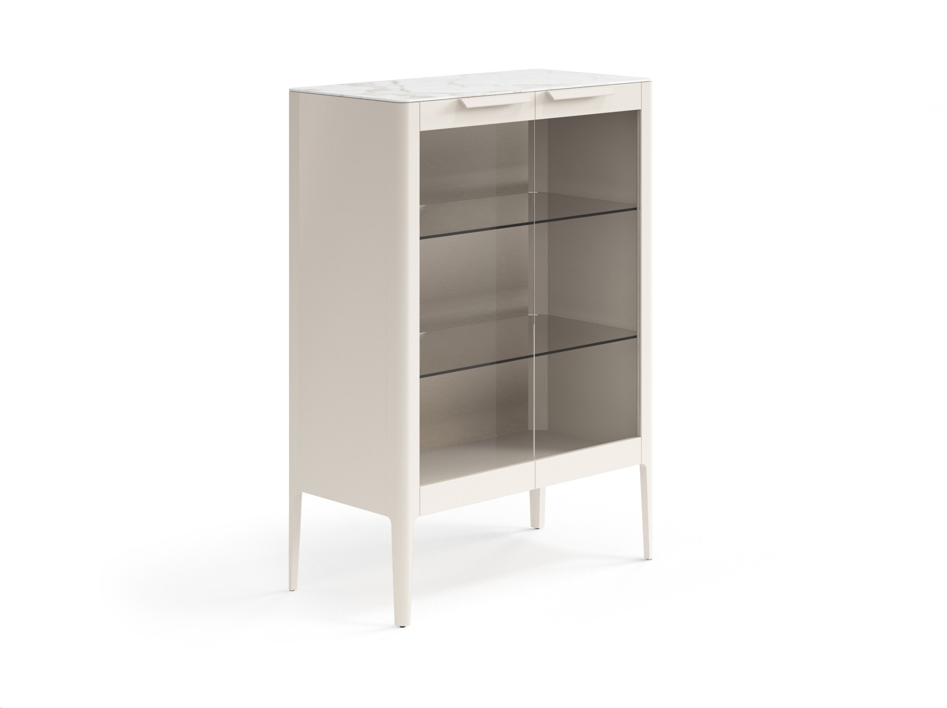 Изысканная витрина украсит интерьер дома и подчеркнёт вашу индивидуальность. Распашные фасады с гладкими серыми стёклами — главная особенность этого изделия, которая делает его уникальным. Две полки из калёного прозрачного стекла выдерживают сильные нагрузки, что позволит разместить внутри витрины книги, посуду или другие предметы декора. Ручки в форме крыла на фасадах подчёркивают элегантность изделия, благодаря удобному захвату пользование витриной становится максимально комфортным.