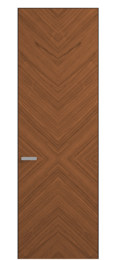Полотно Rift в скрытом алюминиевом коробе становится полноценным элементом декора. В коллекции представлено 9 моделей дверей в высоте до 3 метров. Рисунок раскладки шпона варьируется от простого до сложного. «Рубашка» для каждого полотна подбирается вручную по цвету, текстуре и фактуре.
