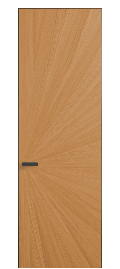 Полотно Рифт в скрытом алюминиевом коробе становится полноценным элементом декора. В коллекции представлено 9 моделей дверей в высоте до 3 метров. Рисунок раскладки шпона варьируется от простого до сложного. «Рубашка» для каждого полотна подбирается вручную по цвету, текстуре и фактуре.