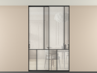 Во всех алюминиевых перегородках, независимо от типа установки, используется компланарный раздвижной механизм, благодаря которому декоративная крышка и полотно находятся в одной плоскости.