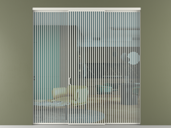 Во всех алюминиевых перегородках, независимо от типа установки, используется компланарный раздвижной механизм, благодаря которому декоративная крышка и полотно находятся в одной плоскости.
