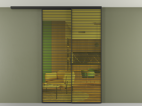 Во всех алюминиевых перегородках, независимо от типа установки, используется компланарный раздвижной механизм, благодаря которому декоративная крышка и полотно находятся в одной плоскости.
