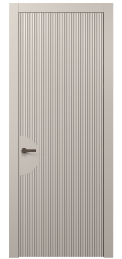 Dune — коллекция дверей украшена частой прямой фрезеровкой, которая напоминает волны дюн в пустыне. Созданная на поверхности полотна текстура привлекает взгляд и добавляет глубину пространству. Двери Dune — это сочетание современного дизайна и вдохновения живописными природными ландшафтами.